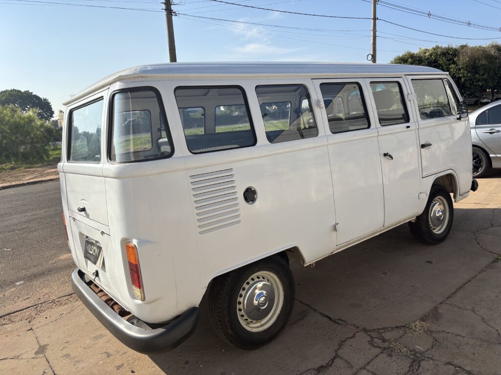 Volkswagen Kombi, ano 1995, usada, com 13.468 km. Este modelo conta com motor 1.6 a gasolina e transmissão manual. A cor branca e conferem um visual clássico e funcional. Ideal para quem busca um veículo versátil, a Kombi é perfeita para transporte de carga ou viagens em família. Com tração 4×2 e direção mecânica, oferece uma experiência de condução simples e direta.